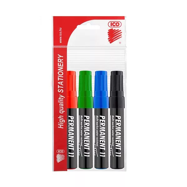 Műanyag, üveg, fém, fa, illetve szinte minden felület feliratozására, jelölésére alkalmas, alkoholbázisú festékkel töltött permanent marker. Írásképe száradás után törlés- és vízálló. Kerekített csúccsal, klipszes kupakkal. 4 alapszínben. Vonalvastagság: 3 mm.