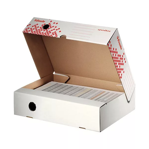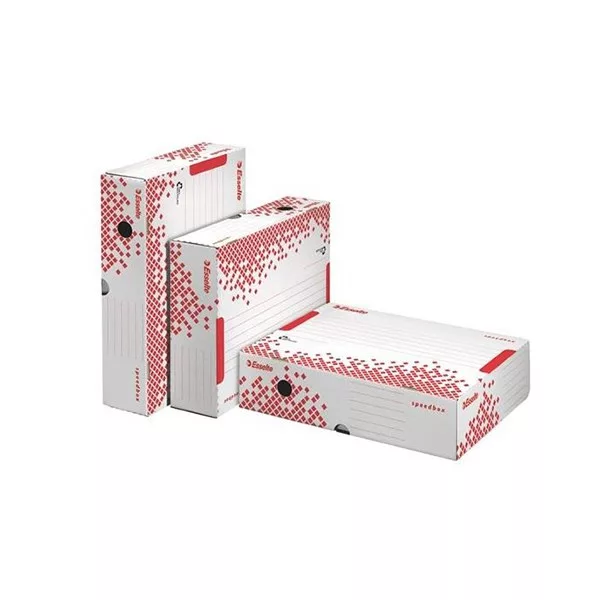 Archiváló doboz ESSELTE Speedbox A/4 80 mm karton fehér felfelé nyíló tetővel újjrahasznosított