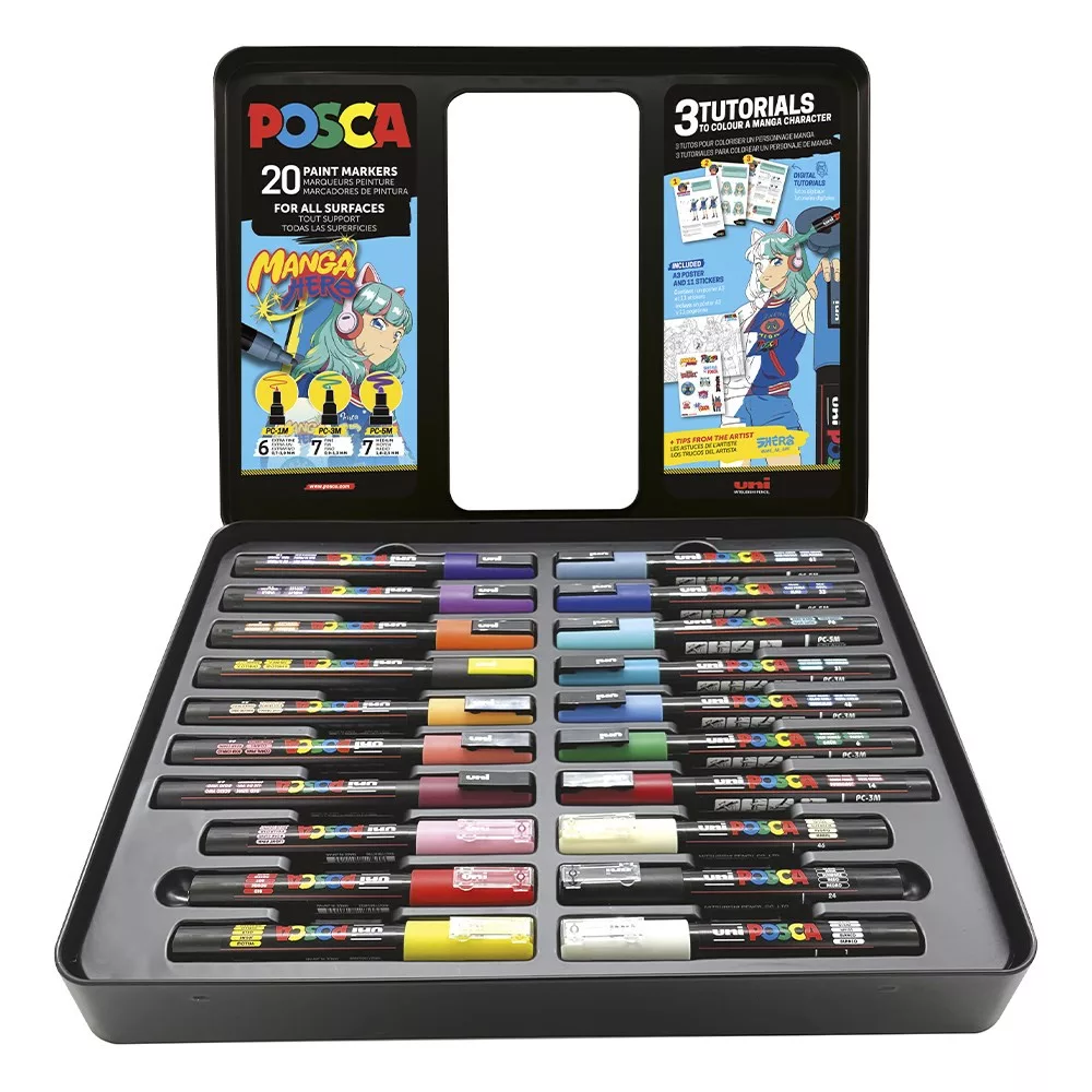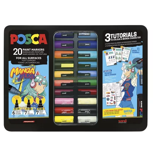 Filctoll UNI Posca Manga Hero vegyes fémdobozos 20 darabos