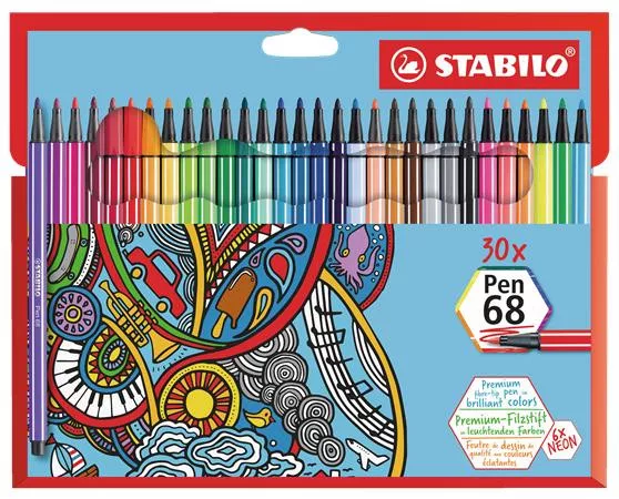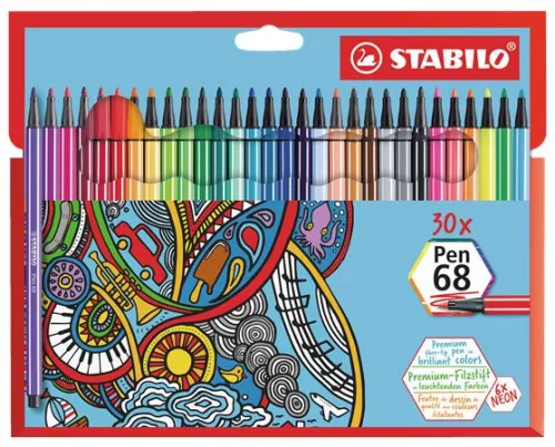 Filctoll készlet, 1 mm, STABILO "Pen 68", 30 különböző szín