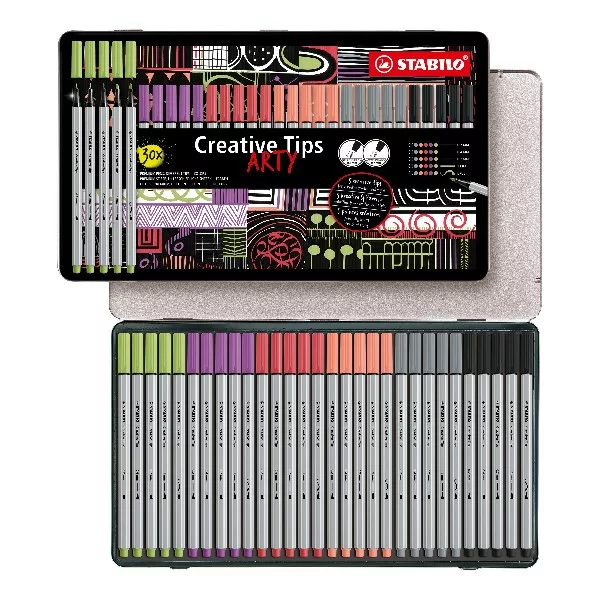 Flictoll STABILO Cretive Tips Arty Pasztell fémdobozos 30 darabos