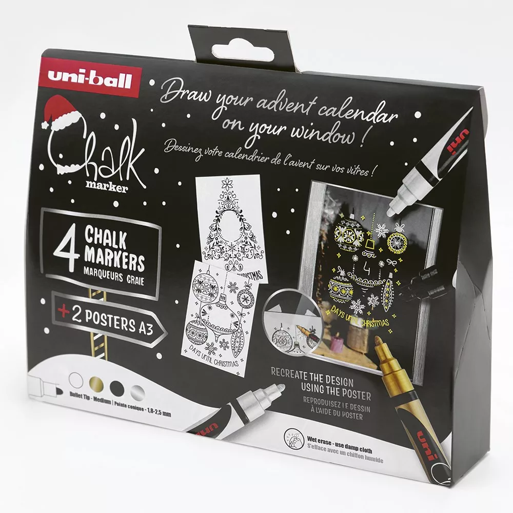 Folyékony kréta UNI PWE-5M Karácsonyi kiadás Elegáns színek 4 darabos