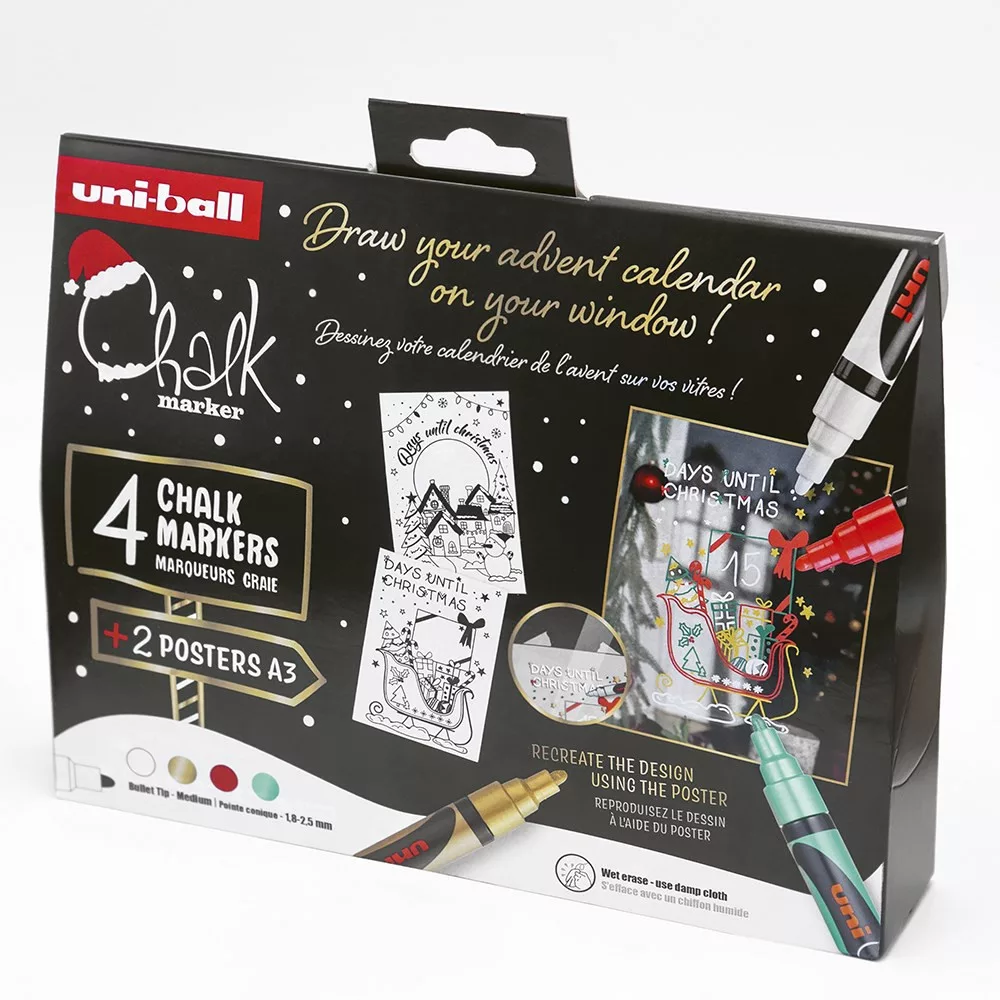 Folyékony kréta UNI PWE-5M Karácsonyi kiadás Tradicionális színek 4 darabos
