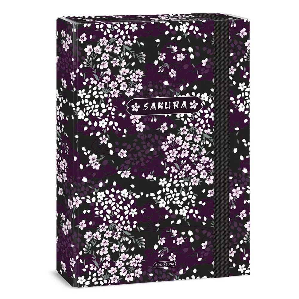 A/4 méretű füzetbox. Kemény, tartós kartonból, 4 cm-es gerinccel, fényes fóliával, 7 mm széles gumipánttal. Belseje egy színnel nyomott. Füzetek, iratok tárolására .