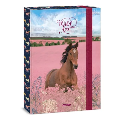 A/4 méretű füzetbox. Kemény, tartós kartonból, 4 cm-es gerinccel, fényes fóliával, 7 mm széles gumipánttal. Belseje egy színnel nyomott. Füzetek, iratok tárolására .