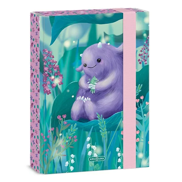 A/5 méretű füzetbox. Kemény, tartós kartonból, 4 cm-es gerinccel, fényes fóliával, 7 mm széles gumipánttal. Belseje egy színnel nyomott. Füzetek, iratok tárolására .