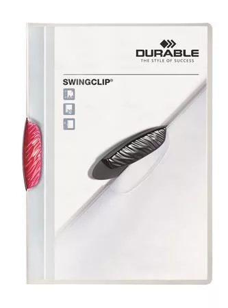 A SWINGCLIP egy vonzó, fiatalos klipmappa, minden típusú prezentációhoz, irathoz, rugalmas polipropilénből. -egyszerű és gyors dokumentumkezelés az oldalra kihajtható műanyag klipnek köszönhetően -színes vagy áttetsző kapoccsal -A4 formátumú dokumentumokhoz, pl. ajánlatokhoz, megbeszélési és oktatási dokumentumokhoz -lyukasztás nélküli dokumentumkezelés -lefűző szerkezet: elliptikus, kihajtható műanyag klip -lefűző szerkezet színe: rózsaszín -előlap színe: áttetsző -hátlap színe: áttetsző -a dokumentum védett a naptól -külső méretek: 218 x 306 x 8 mm (szé x ma x ho) -kapacitás: 30 lap -formátum: A4 -irány: álló -anyaga: műanyag Itt megtekinthető és letölthető a termékadatlap. Itt megtekinthető és letölthető a környezetvédelmi adatlap. Gyártó/első EU forgalmazó elérhetősége:  DURABLE Hunke & Jochheim GmbH & Co. KG Westfalenstrasse 77-79, D- 58636 Iserlohn, Germany info@durable.de www.durable.de
