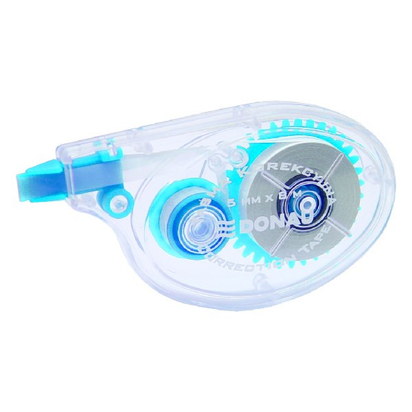 Hibajavító roller a gyors korrekciókhoz, elfordított fejjel. A fektetett hibajavító egyszerű és pontos használatot tesz lehetővé. Az átlátszó test biztosítja a szalag fogyásának folyamatos ellenőrzését.