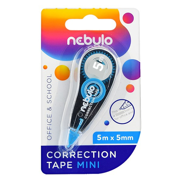 Nebuló hibajavító Mini roller 5mm széles és 5m hosszú szalaggal. Tolltartóban/táskában is könnyen elfér. Kézhez illő forma. Kiválóan fed és tapad. Azonnal felülírható. A rugalmas hegyet, és erős szalagot védőkupak óvja.