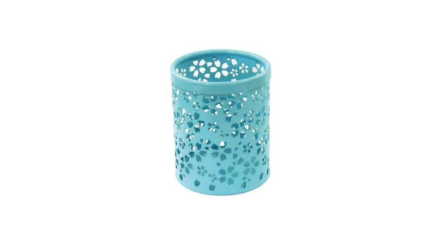 Mesh fémhálós kivitelű kerek formájú asztali ceruzatartó modern virág minta díszítéssel. Több színben is elérhető.