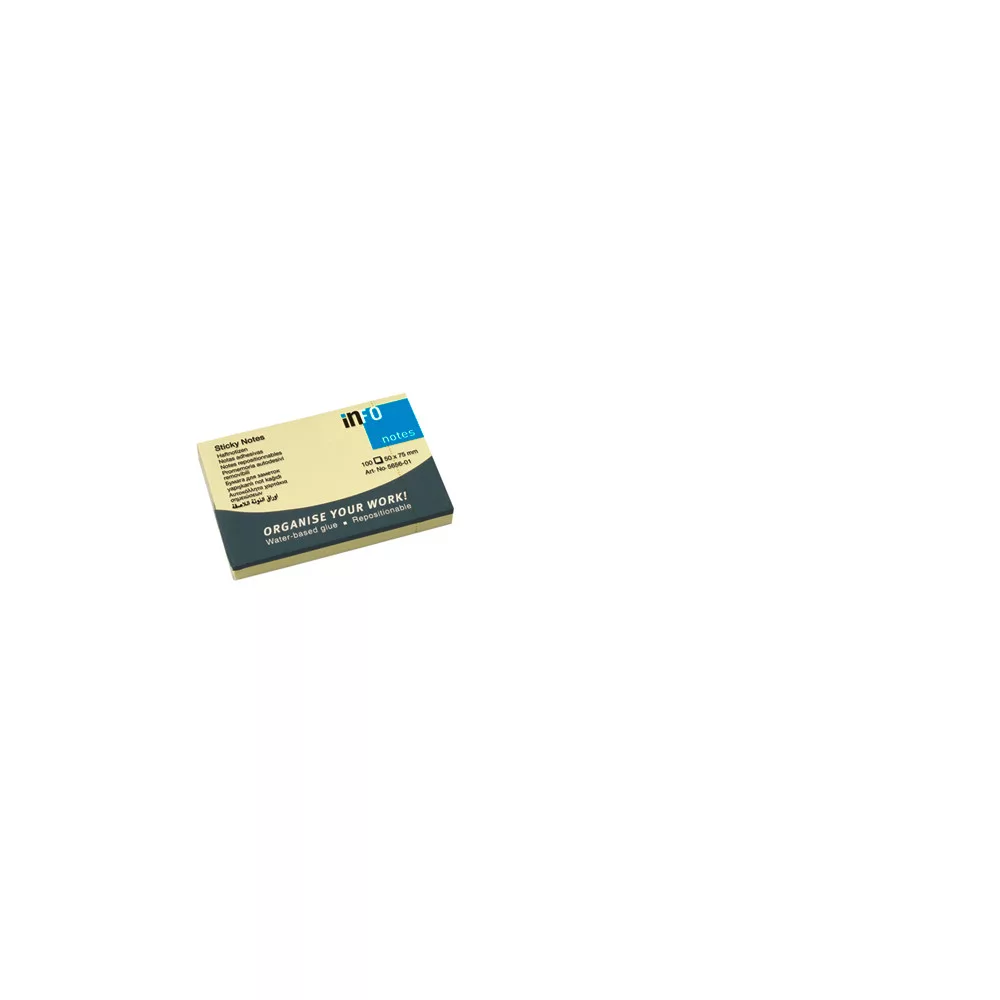 Jegyzettömb öntapadó, 50x75mm, 100lap, Info Notes, sárga