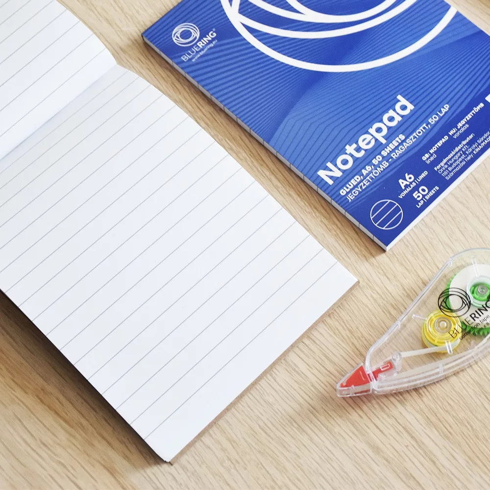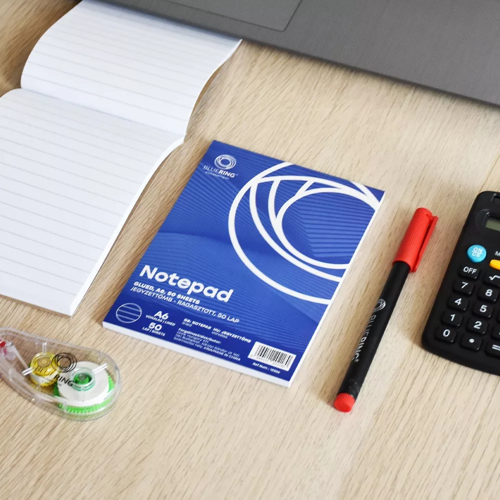 Jegyzettömb ragasztott, A6, 50lap, Bluering® vonalas