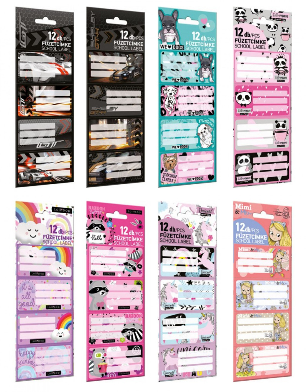 Füzetcímke Lizzy, 12 db/cs., különböző mintákkal