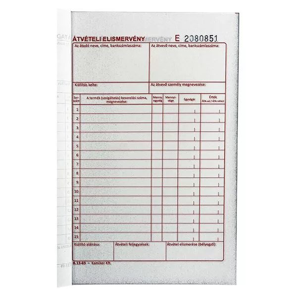 Átadás-, átvételi elismervény.