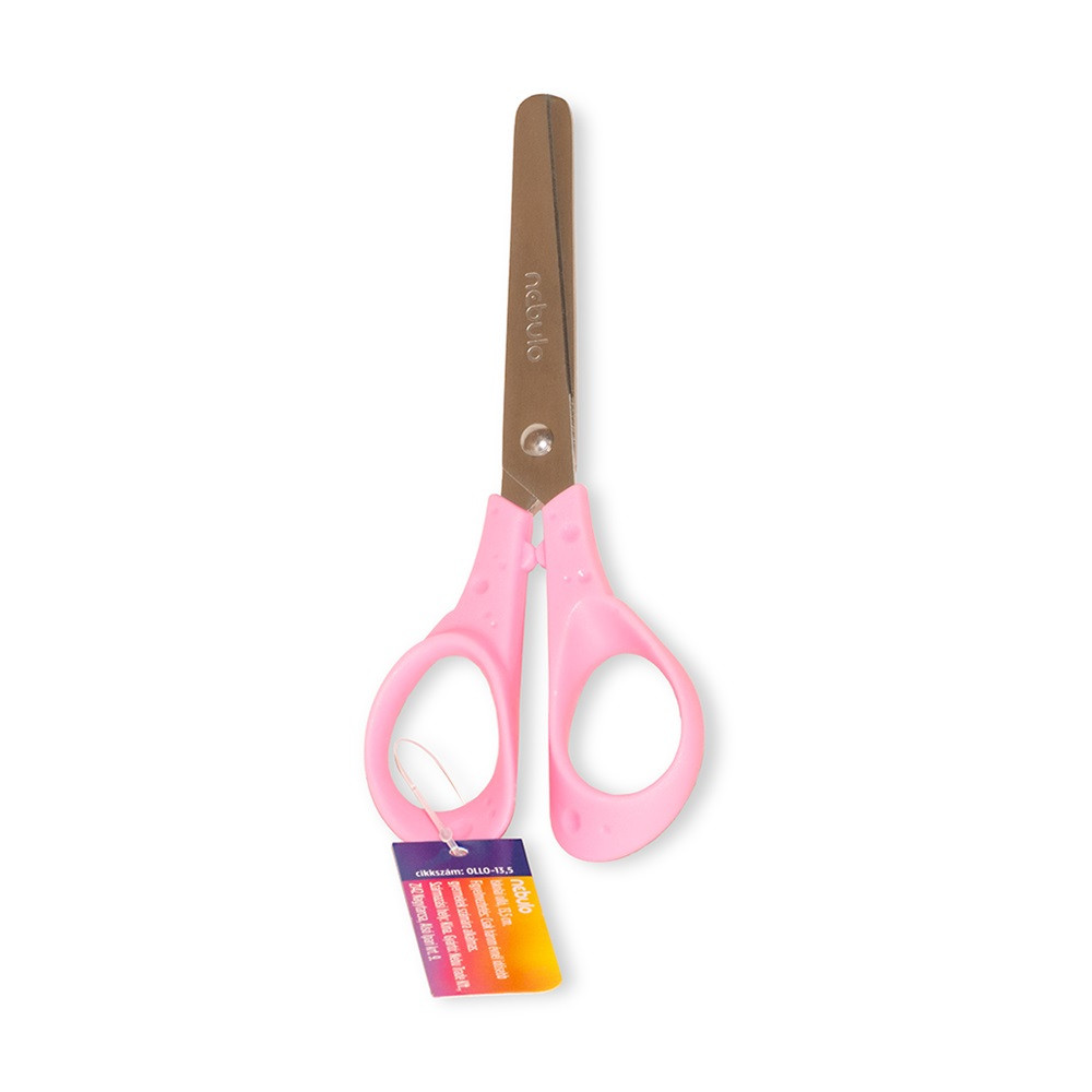 Olló 13,5cm, kerekített heggyel, ergonomikus, iskolai, Nebulo