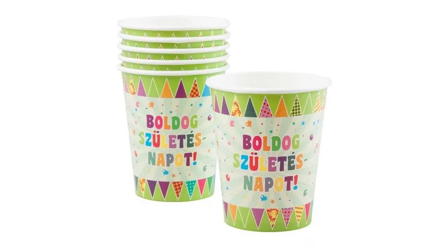 Papírpohár, többféle boldog szülinapot feliratos, 250 ml, 6 db/cs