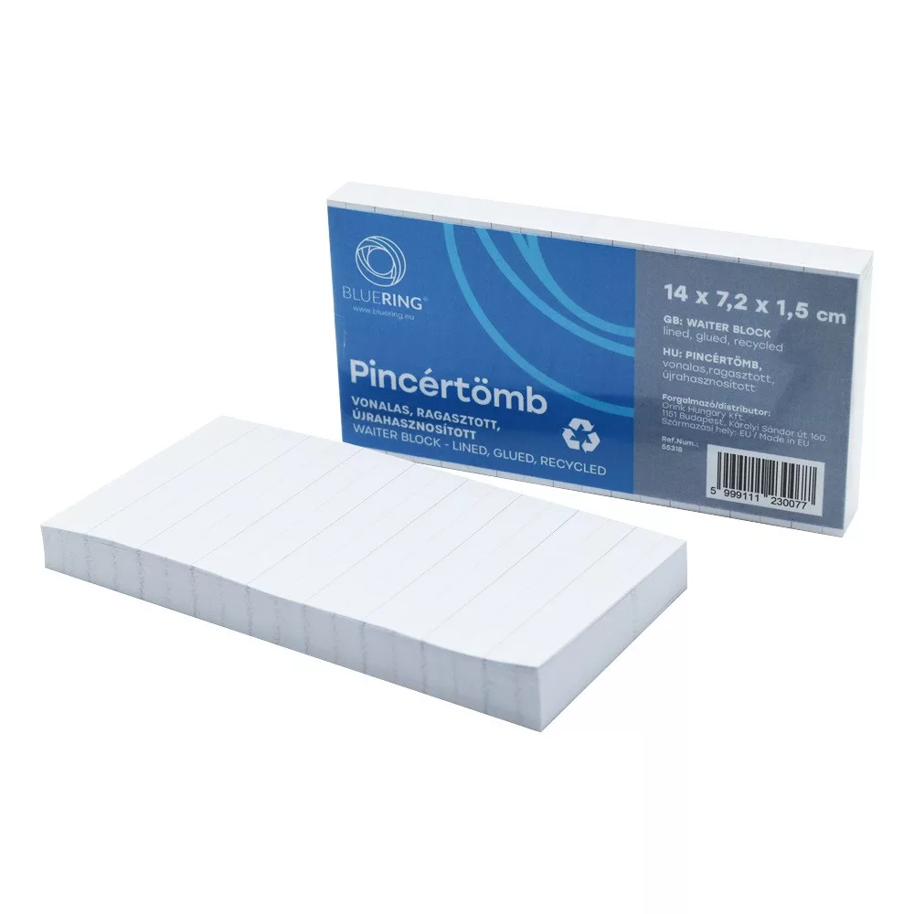 Pincértömb vonalas újrahasznosított 14x7,2 cm, ragasztott Bluering®