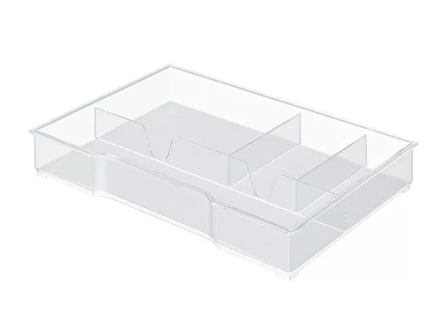 - a Leitz "Plus" és "Cube" irattárolók nagy és kis fiókjaiban is elfér - 4 rekesz kisebb asztali kiegészítők tollak, jegyzettömbök, névjegykártyák, adattárolók, gemkapcsok stb. tárolásához - áttetsző, fényes felületű, szövetmintás talp; a tálca alján szimbólumok jelzik a tárolási lehetőségeket - a csúszásmentes talp megakadályozza a tálca elmozdulását - méret: 245x33x165 mm