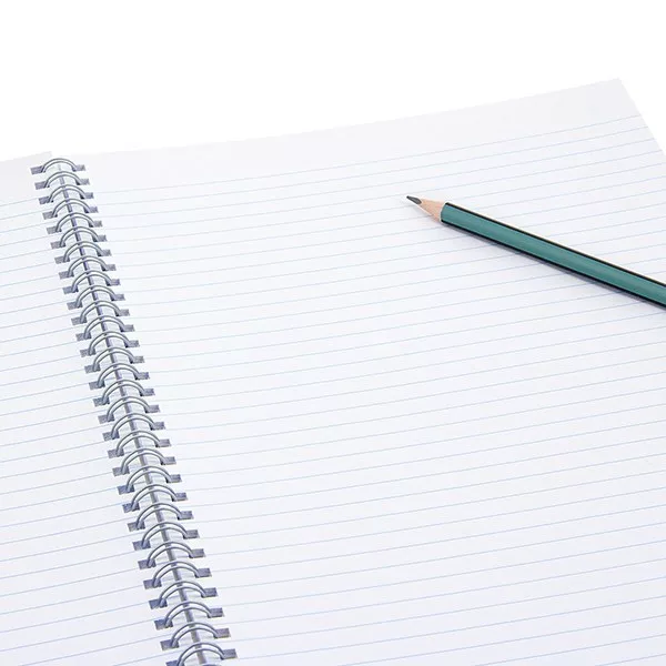 A/4-es méretű vonalas spirálfüzet. 60 lapos, belseje 80 gr-os fehér papírból, a lapok széle margózott. Borítója 320 gr-os kartonból, matt formalakkal készült. Különböző mintájú füzetek 5 db-os fólia csomagon belül vegyesen csomagolva, a füzeteknek megegyezik a kódja.