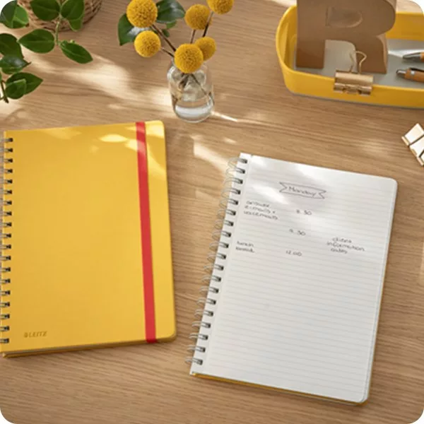 Érezd magad otthon a Leitz Cosy termékcsaláddal, bárhol is dolgozzál! A minimalista dizájnnak, matt felületnek és meleg, hívogató színvilágnak köszönhetően stílust és színt visz a munkakörnyezetedbe. A puha tapintású Cosy spirálfüzet ideális jegyzetek készítéséhez, és a kompakt kialakításnak köszönhetően könnyen elfér a kézitáskádban vagy laptop táskádban. Ez a prémium minőségű, vonalas füzet pozitív hangulatú, hatékony munkakörnyezet biztosít, így tökéletes kiegészítője otthonodnak vagy irodádnak.