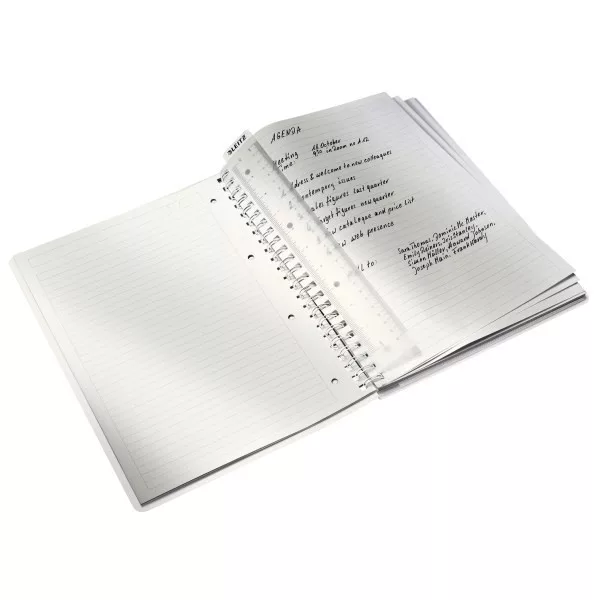 Spirálfüzet lefűzhető tasakkal a különálló lapok számára.