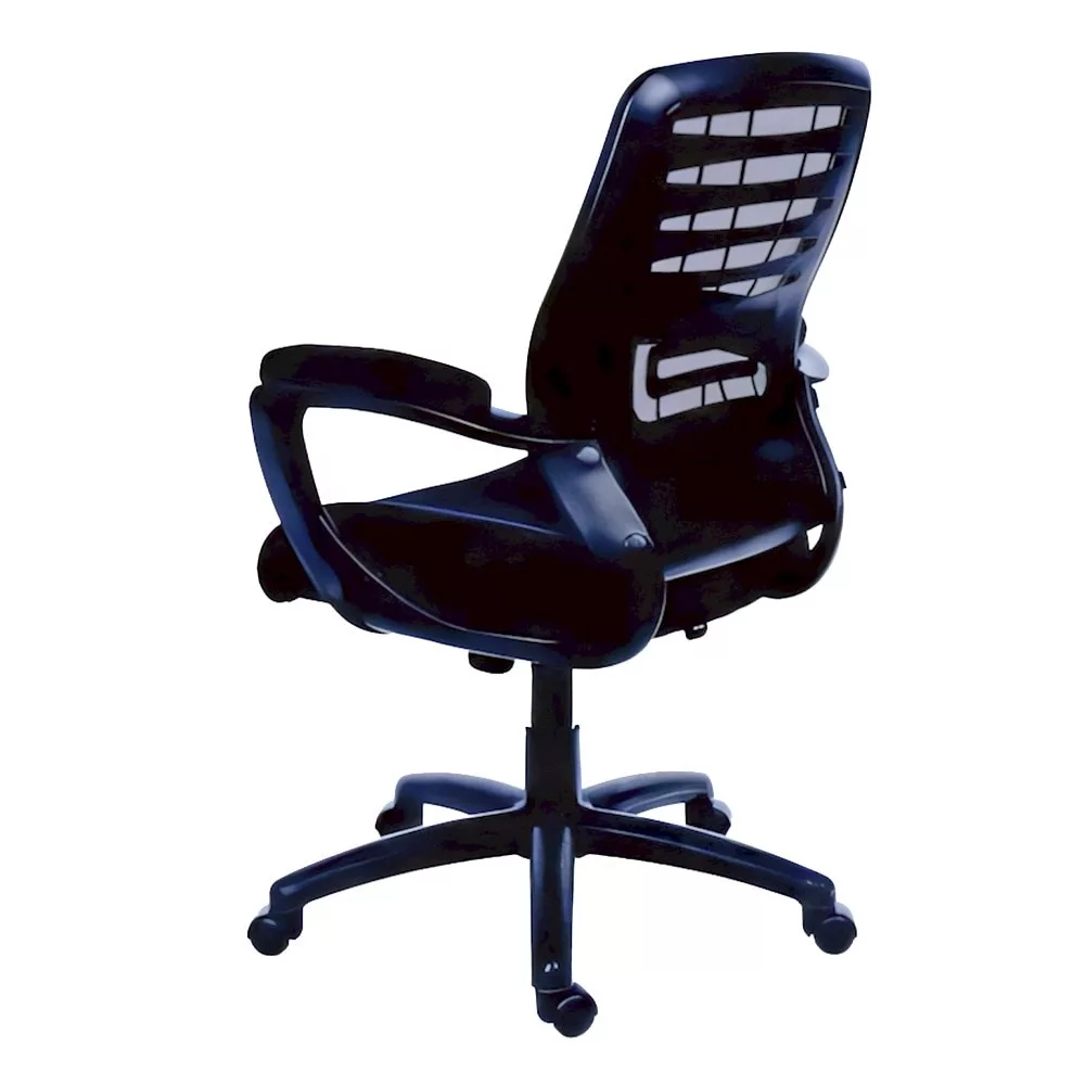 Irodai forgószék párnázott ülőfelülettel. Gázliftes magasságállítás. Rögzíthető hintamechanika. Rögzített, hálós háttámla. Párnázott karfa.