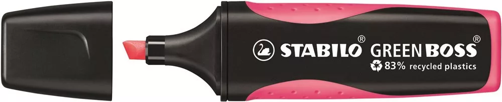 A STABILO GREEN BOSS 83%-ban újrahasznosított műanyagból készül és a legjobb termékjellemzőkkel bír, amik már ismertek a BOSS Original és a BOSS executive révén. Egy tökéletes megoldás azoknak, akiknek a magas minőségen és a dizájnon túl egyben a környezetük megóvása is sokat jelent.