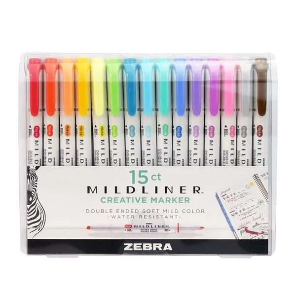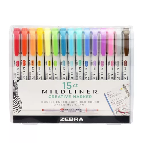 Szövegkiemelő készlet kétvégű ZEBRA Mildliner Cool&Refined, Fluorescent, Warm 1,4-4,0 mm 15 darabos
