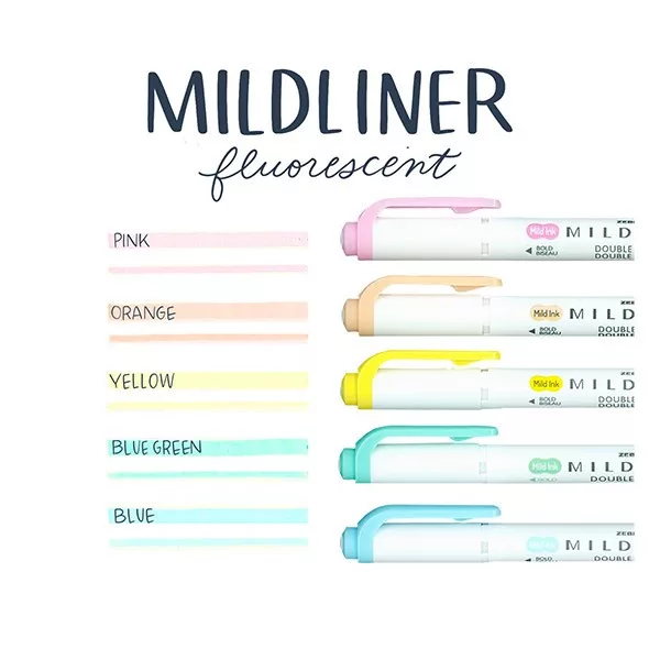 Szövegkiemelő készlet kétvégű ZEBRA Mildliner fluorescent 1,4-4,0 mm 5 darabos