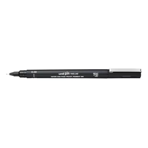 Az uni-ball PIN, egy fakulásálló és vízálló pigmenttinta rajzmarker, gyakran az első választás a művészek és a tervezők számára. Az ultrafinom 0,03 mm-es hegy ideális nagyon apró részletekhez, finom vonalakhoz és lágy, szabad árnyékoláshoz. A PIN tollhegy méreteinek széles választéka lehetővé teszi, hogy éles, tiszta vonalakat és olyan tökéletes technikákat hozz létre, mint a pontozva árnyékolás, a keresztsraffozás és az árnyékolás.
