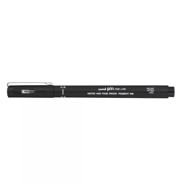 Az uni-ball PIN, egy fakulásálló és vízálló pigmenttinta rajzmarker, gyakran az első választás a művészek és a tervezők számára. A vastag, 0,8 mm-es tollhegy kiválóan alkalmas széles vonásokra és vonalakra, valamint színfedésre. A PIN tollhegy méreteinek széles választéka lehetővé teszi, hogy éles, tiszta vonalakat és olyan tökéletes technikákat hozz létre, mint a pontozva árnyékolás, a keresztsraffozás és az árnyékolás.