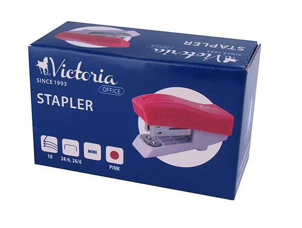 Tűzőgép, 24/6, 26/6, 12 lap, VICTORIA OFFICE, "Mini", rózsaszín