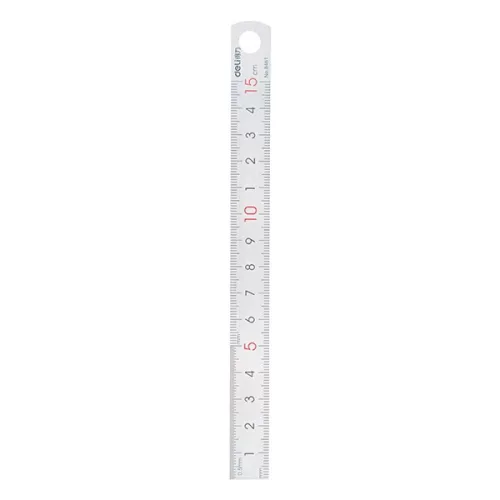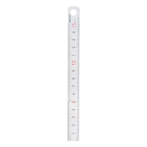 Jól olvasható skála, akasztólyukkal ellátott fém vonalzó. Inch és mm skála. Műanyag tartóban.