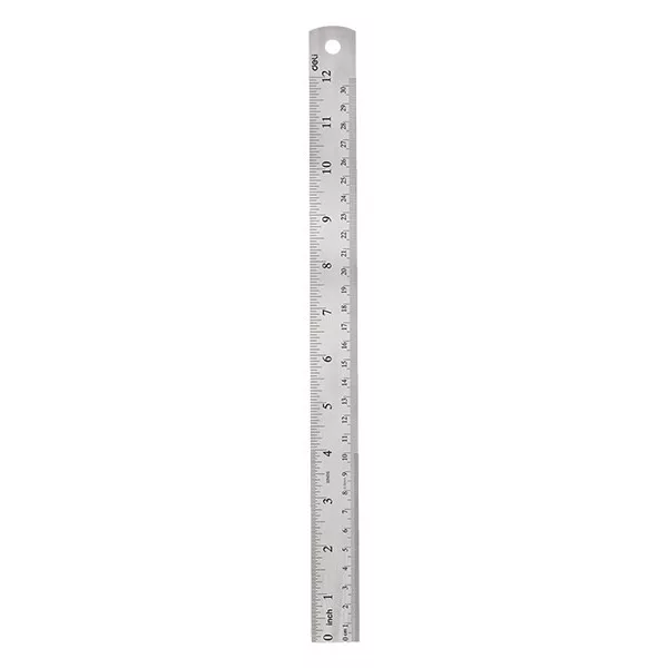 Jól olvasható skála, akasztólyukkal ellátott fém vonalzó. Inch és mm skála. Műanyag tartóban.