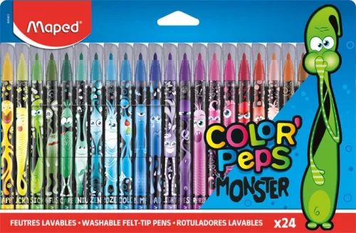 Filctoll készlet, 2,8 mm, kimosható, MAPED "Color`Peps Monster" 24 különböző szín