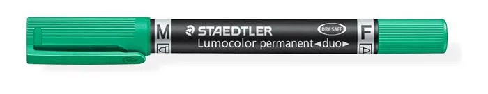 Alkoholos marker, 0,6/1,5 mm, kúpos, kétvégű, STAEDTLER "Lumocolor® duo 348", zöld