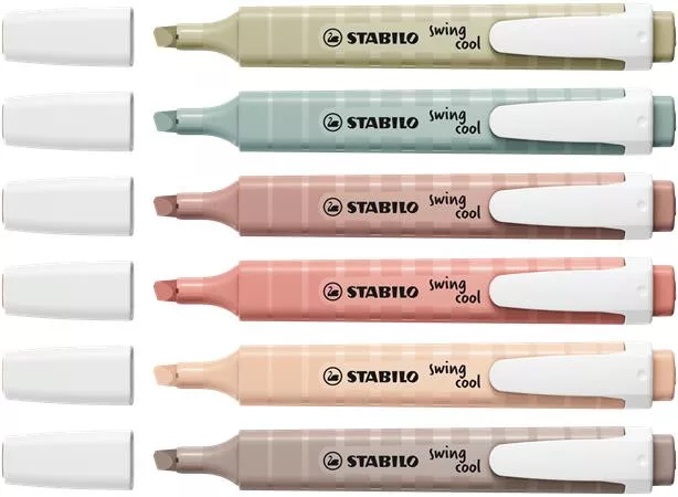 Szövegkiemelő készlet, 1-4 mm, STABILO "Swing cool NatureCOLORS", 6 különböző szín